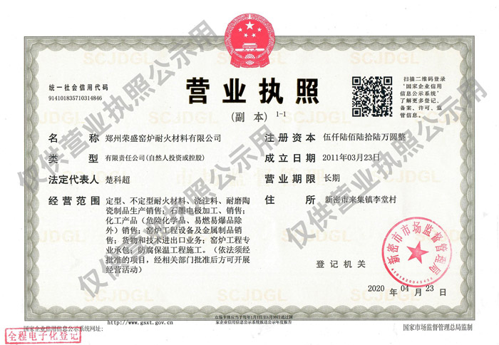 ©2022 鄭州榮盛窯爐耐火材料有限公司 版權(quán)所有 豫ICP備13012392號-2 營業(yè)執(zhí)照公示